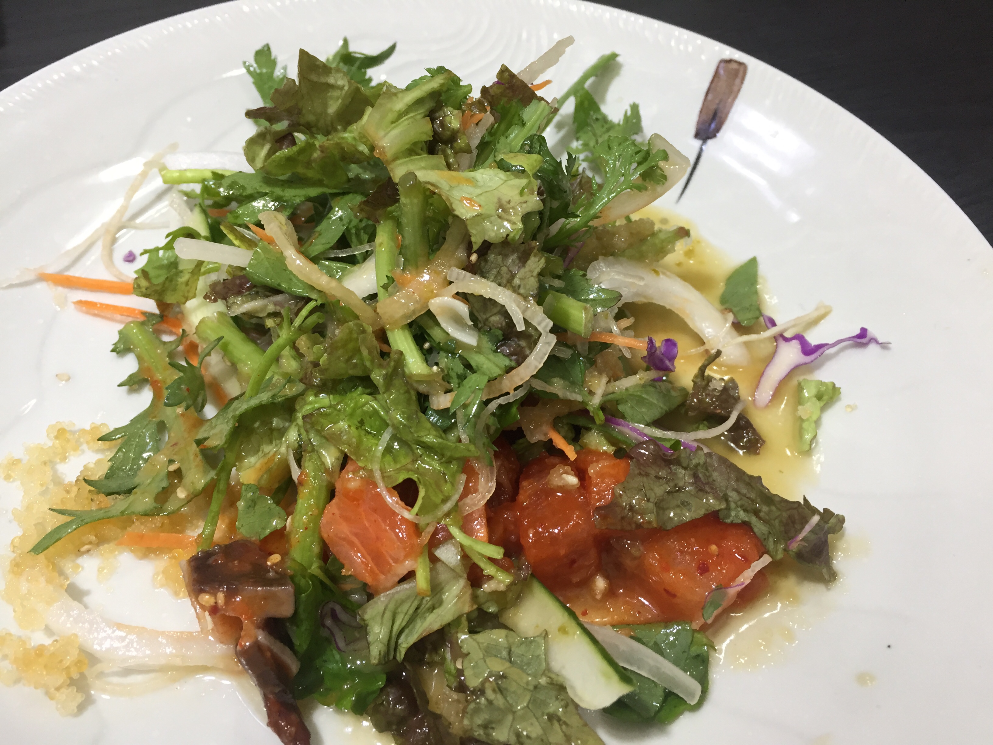 Der Salat mit frischem (rohem) Lachs hat fantastisch geschmeckt.