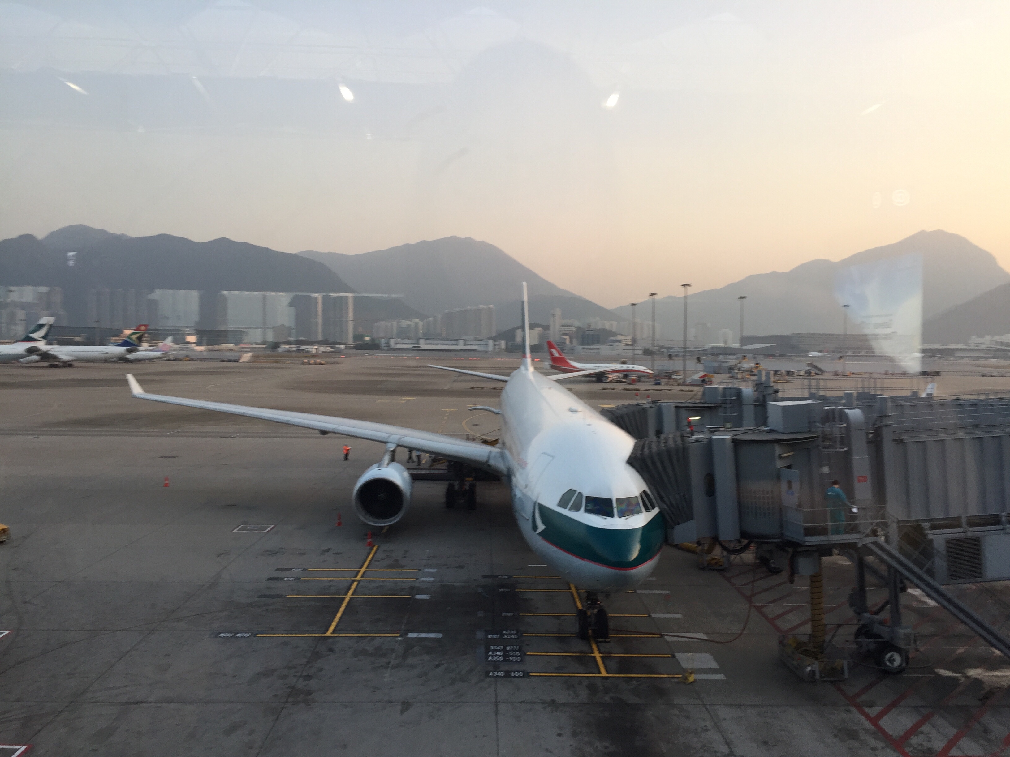 Heute Morgen um 6 Uhr erlöste mich der Wecker von einer unruhigen Nacht. Mein kleines stickiges Zimmerchen ohne Frischluft nervte nur noch. Schnell die Tasche geschnappt und raus. War das herrlich ruhig auf der Straße. In 1 Stunde ging es problemlos zum Flughafen. Die Ausreise ist trotz vieler Menschen schnell. Zu meinem Leidwesen gibt es für Hongkong weder Einreise- noch Ausreisestempel. Was bleibt ist ein Papiervisum als loses Zettel. 2,5 Stunden Zeit. Noch halb verschlafen bin ich meinen asiatischen Mitreisenden gefolgt, die sich alle in eine Schlange vor einem Restaurant anstellten. Warum? Es war extrem günstig: 1 Kaffee 1,3. Wo anders kostet er das 3fache. Dann habe ich FlughafenSightseeing gemacht.