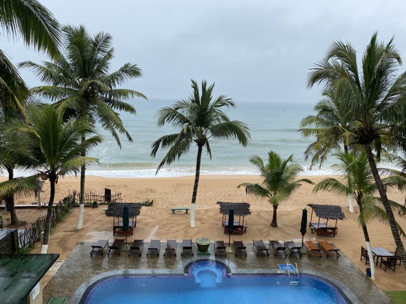 Wildes Meer und rauschende Palmen sind die Einschlafmusik, denn das Hotel liegt dieselt am Strand.